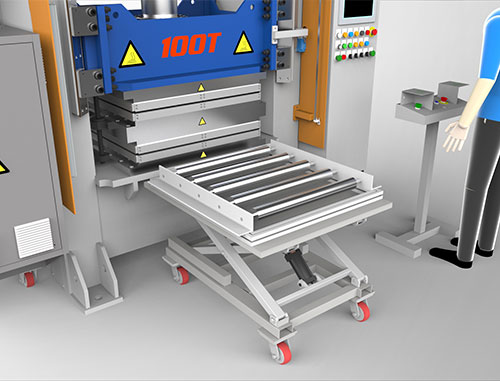 Peek/Peak板材成型压机是专门用于将Peek材料的单向带通过超高温将其固化成型为一块Peek板的压机。这种设备带有上下两个操作区域,下层用于高温加热,上层用于冷却定型。